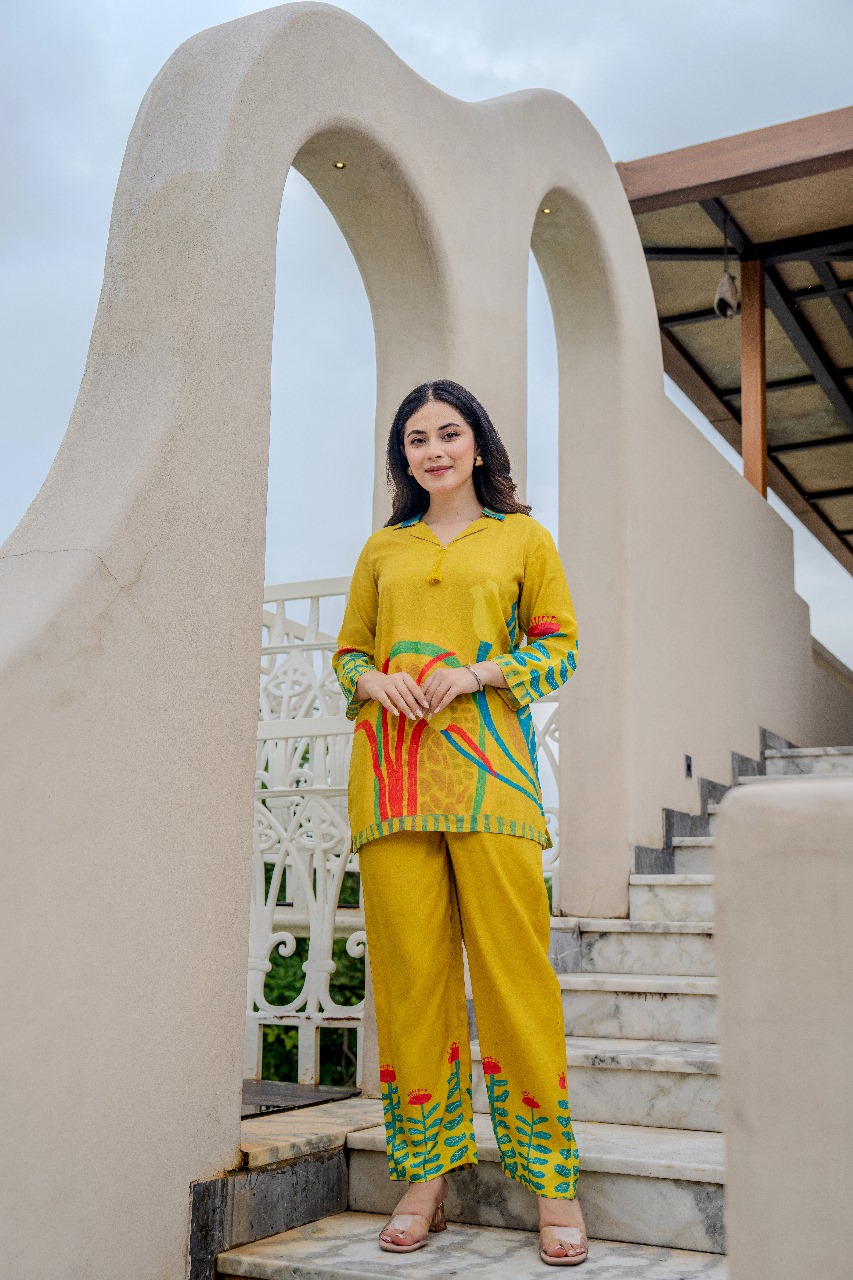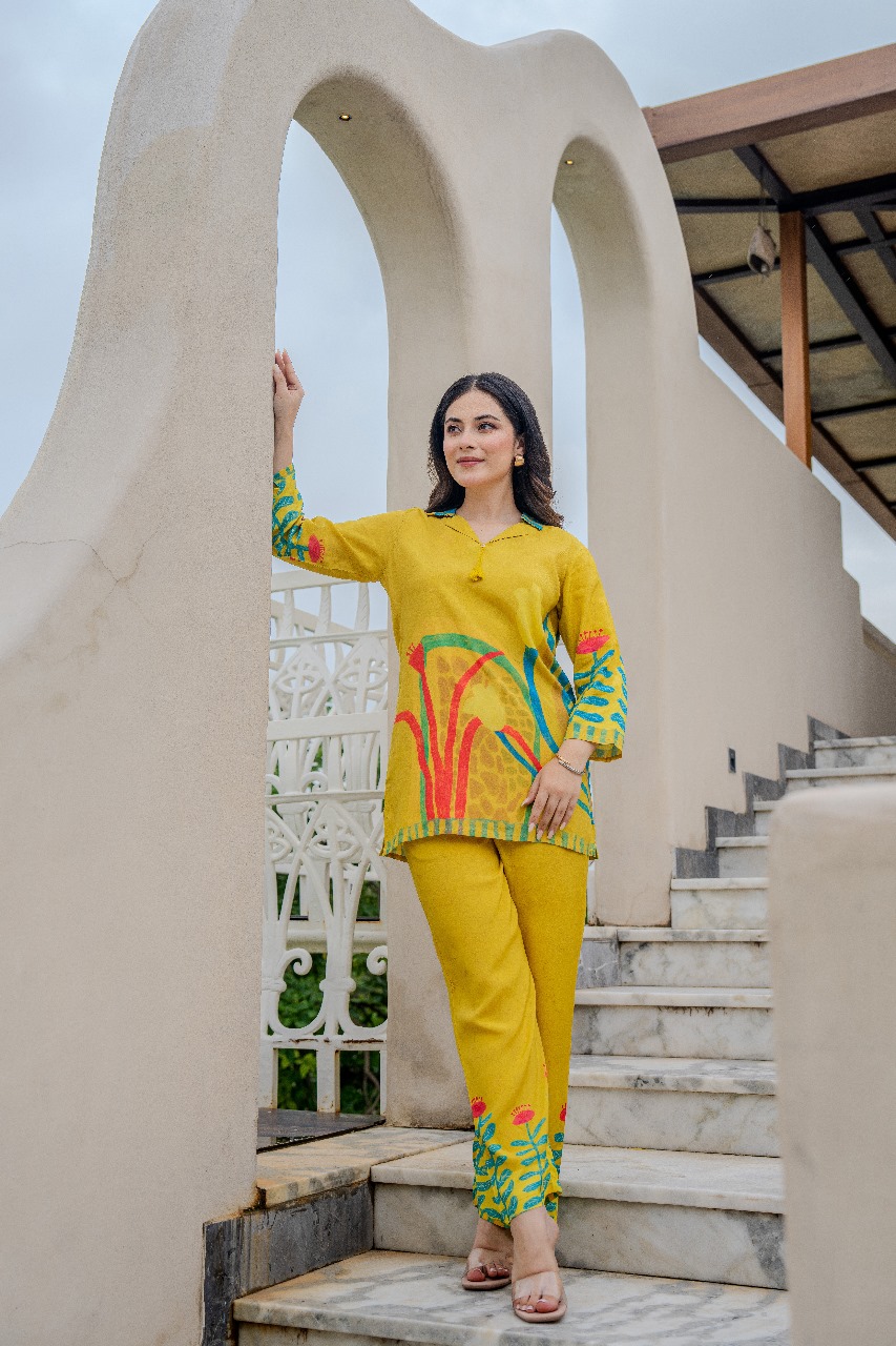 Introducing our Premium Pure Muslin Cords Set, crafted to redefine sophistication and comfort in your wardrobe. Made with 100% pure muslin, this set is ultra-soft, lightweight, and breathable, making it the perfect choice for all-day wear. The addition of beautiful digital prints adds a touch of modern artistry and elegance, ensuring you stand out effortlessly.